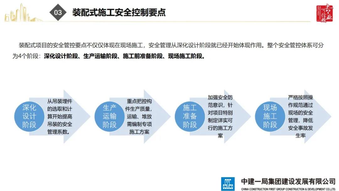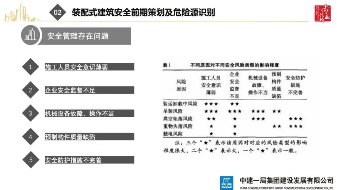 2020年8月28日,“2020全國重大工程安全管理創(chuàng)新與事故防范經(jīng)驗(yàn)交流會(huì)”在北京召開。中建一局集團(tuán)建設(shè)發(fā)展有限公司副總經(jīng)理李浩做“裝配式建筑施工安全風(fēng)險(xiǎn)控制及事故防范措施”的報(bào)告。通過分析裝配式建筑安全事故典型案例,從深化設(shè)計(jì)、生產(chǎn)運(yùn)輸、施工前準(zhǔn)備、現(xiàn)場施工4個(gè)階段提出安全控制要點(diǎn);指出安全前期策劃和危險(xiǎn)源識別的重要性;最后,提出裝配式建筑安全控制建議及發(fā)展方向。
